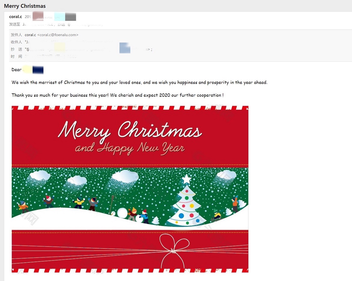 Fujian Fenan Aluminium Co., LTD celebrate Christmas? We wore Christmas hats ,decorated Christmas tree, have Christmas lights strung outside their houses or light candles in the windows. Similar to the West, Christmas is celebrated by giving gifts to family and loved ones. Gift hampers, which include edible Christmas treats, are on sale at many hotels and specialty stores during Christmas time. Christmas cards, gift wrap, and decorations are easily found at large markets, hypermarkets, and small shops. Exchanging Christmas cards with close friends and family is becoming more popular as is exchanging small, inexpensive gifts. We takes photos to share happiness.And we send e-mails to our dear customer who brought