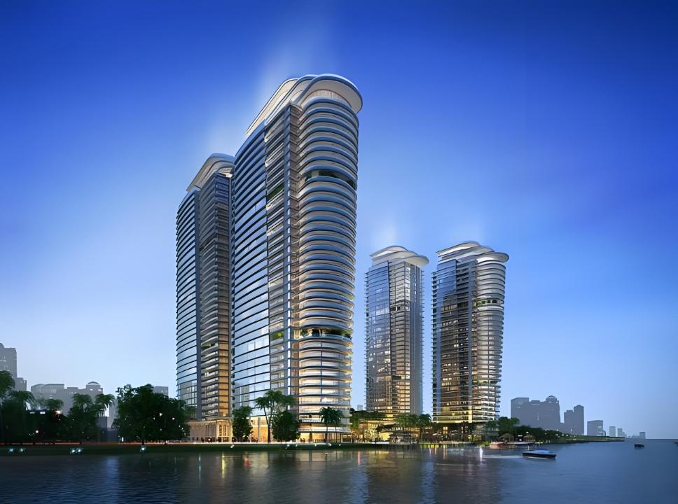 Morgan Tianyu represents another landmark work of Morgan Group in Cambodia. Perched on a 220-meter-high land beside the river bay, it boasts a private helicopter pad and a riverside private yacht marina exclusively for elite individuals. Five innovatively designed and modern buildings, arranged in a U-shape, stand tall on a 2.4-hectare waterfront plot, with a total gross floor area of 400,000 square meters. Among them, a 220-meter-high five-star hotel and serviced apartments complement the other four residential buildings, surrounding nearly 10,000 square meters of ecological landscape gardens and waterscapes, achieving a perfect integration of work and life. Designed by master planners, the project ensures spacious building intervals, allowing each building to enjoy a 360-degree view of the river or garden landscape, creating high-quality living spaces that meet international standards.