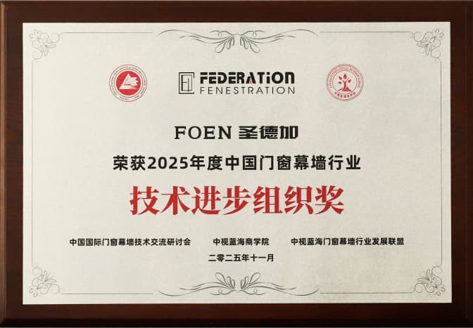 On November 4, 2025, the highly anticipated China International Fenestration & Curtain Wall Technical Exchange Seminar was grandly held in Shanghai, drawing significant attention from the industry. At this major industry event, FOEN Shengdejia stood out with its outstanding product quality and technological innovation capabilities, winning two prestigious industry awards—the 2025 China Fenestration & Curtain Wall Industry Technological Progress Organization Award and the 2025 China Home Fenestration "Five Excellences" Benchmark Enterprise Award.