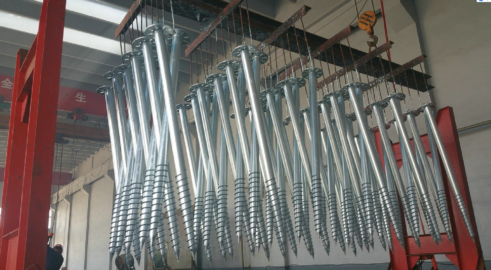 Ground screws are for ground-mounted solar power systems without any block making onsite.